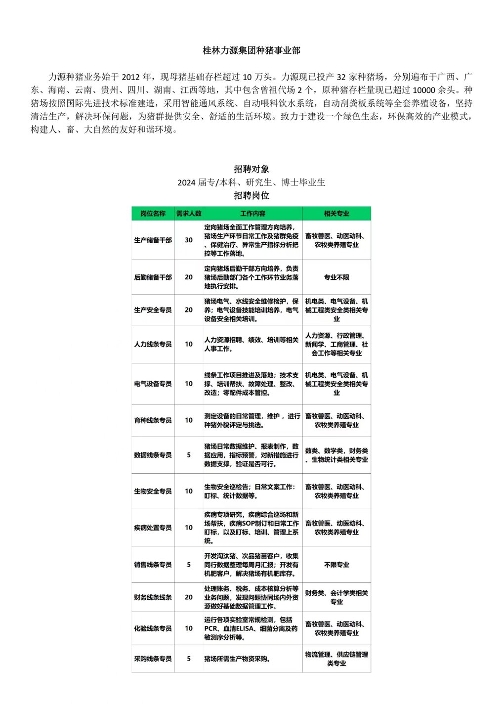 桂林力源-种猪事业部秋招简章